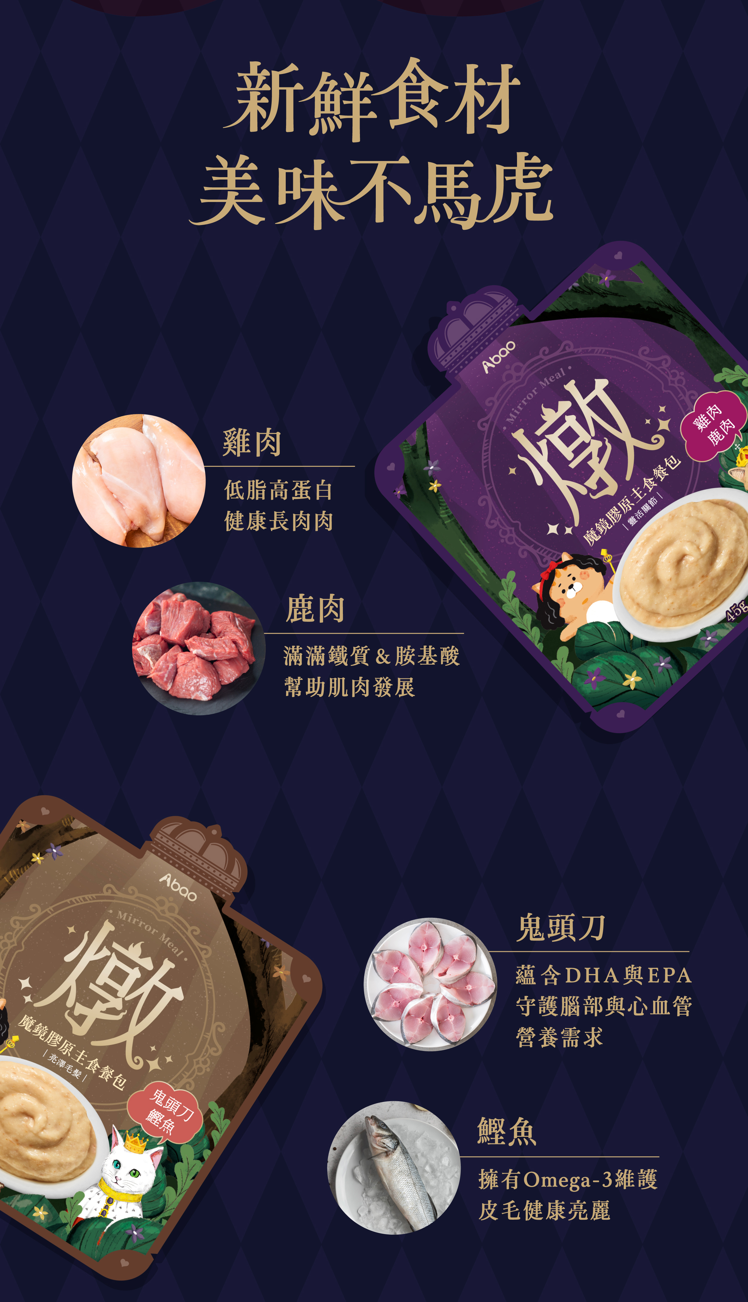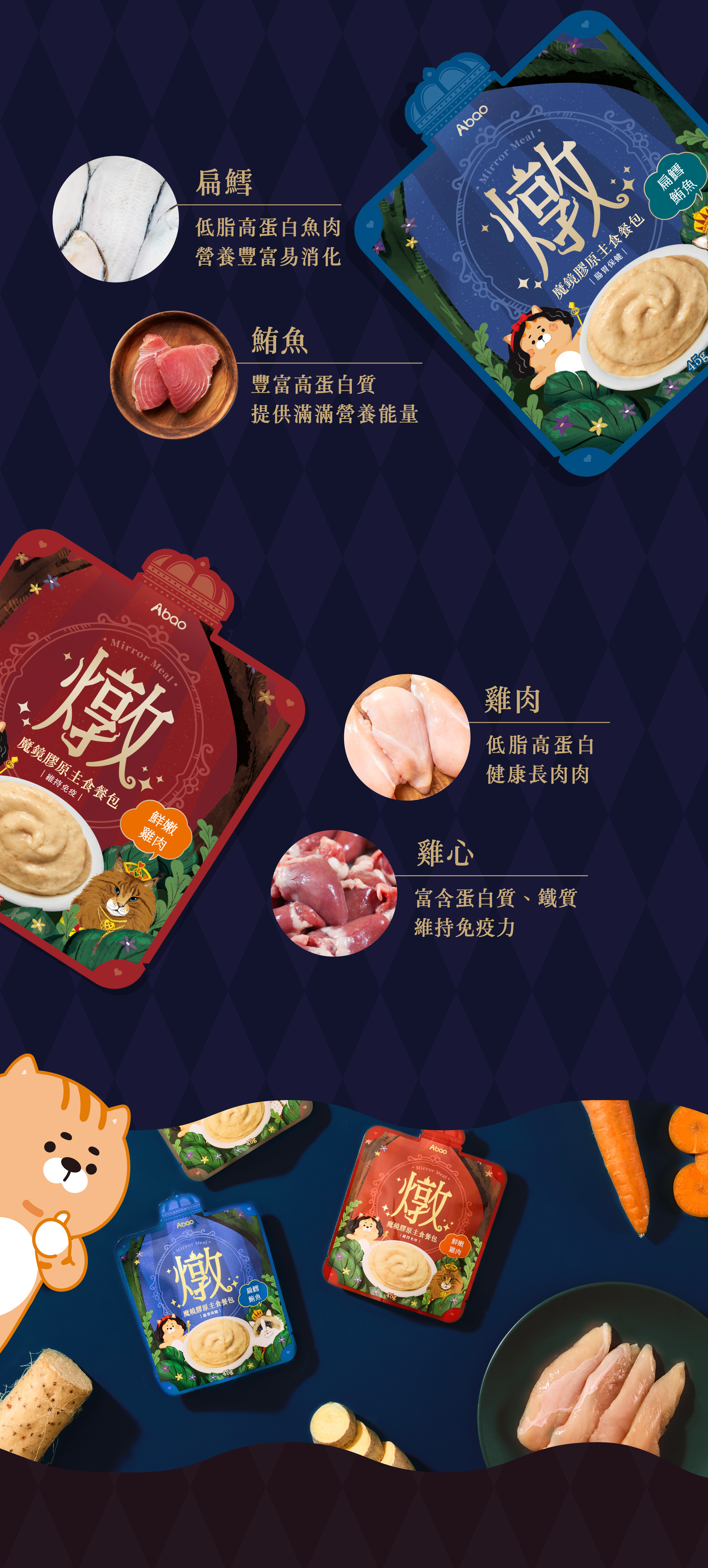 Abao - 魔鏡膠原主食餐包 - 鬼頭刀鰹魚 (亮澤毛髮) 45g