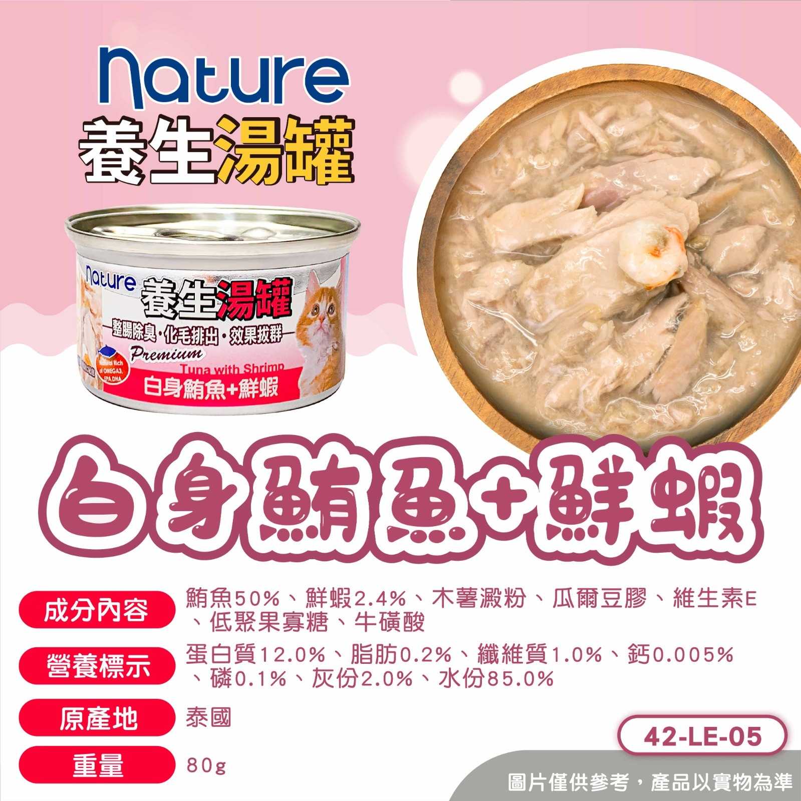 Nature 養生貓湯罐 (白身鮪魚 + 鮮蝦) 80g